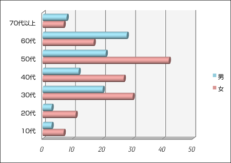 | アンケート方法 | 受付にてアンケート用紙を5回以上来院された患者さん全員に配布解答後に回収しました |