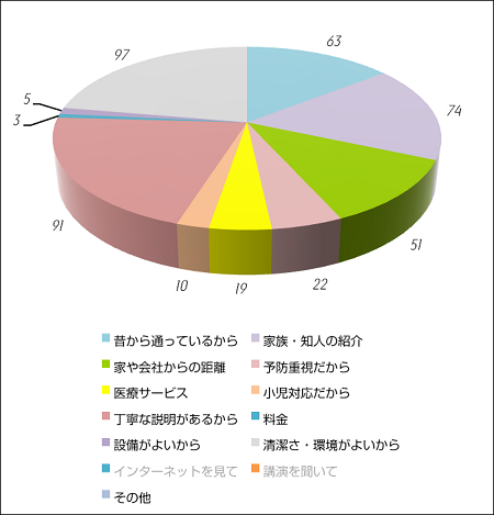 アンケートの結果からは、多くの皆様にこの診療所の理念や診療方針をよくご理解いただいていることが分かり、大変嬉しく思いますと同時に、責任の重さも痛感いたしております。いくつかのご意見やご要望については、この場を借りて、診療所としての対応や考えを最後に述べさせていただきたいと思います。